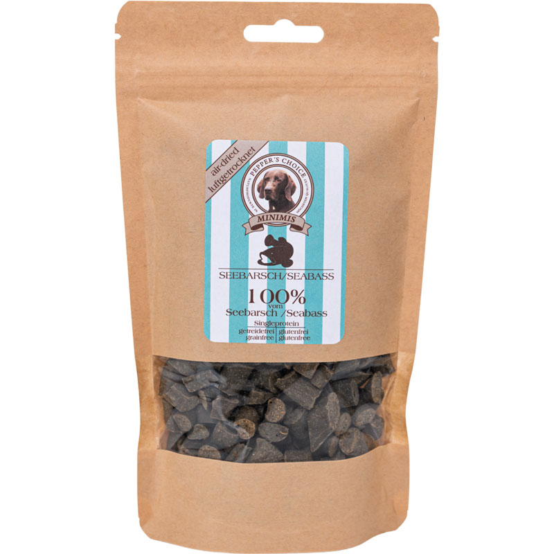 Startseite » Hunde » Hundefutter » Snacks & Lekkerlis » Peppers Choice Seebarsch - Minimis - Singleprotein